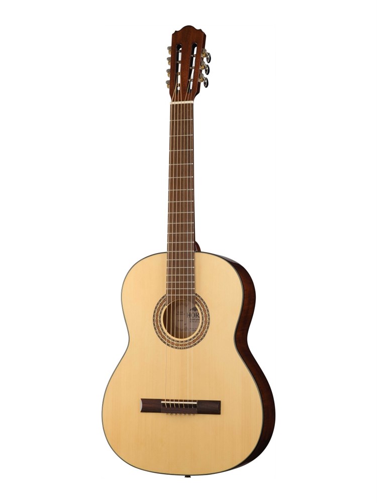 7-струнная акустическая гитара S1010/7R от компании Hora. Верхняя дека сделана из массива ели, а нижняя дека и обечайки - из массива клена. Благодаря такому сочетанию пород древесины инструмент обладает насыщенным, богатым обертонами и четким звучанием с отличным резонансом. Гриф выполнен из клена и имеет накладку из палисандра. За стабильный строй отвечает никелированная колковая механика.