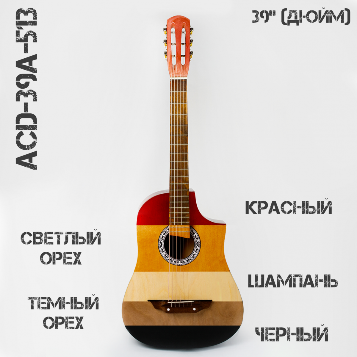 Это акустическая гитара без выреза среднего размера (39''). Отличный вариант для начинающих музыкантов и профессионалов. Имееет сбалансированное яркое звучание и красивое оформление.