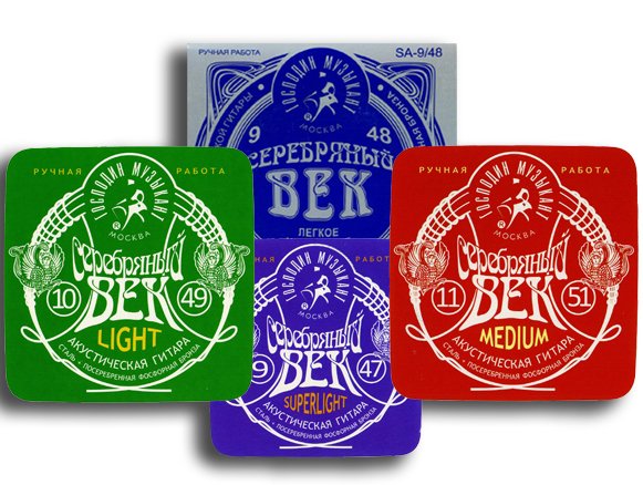 Струны для акустической гитары с обмоткой из посеребренной фосфорной бронзы.