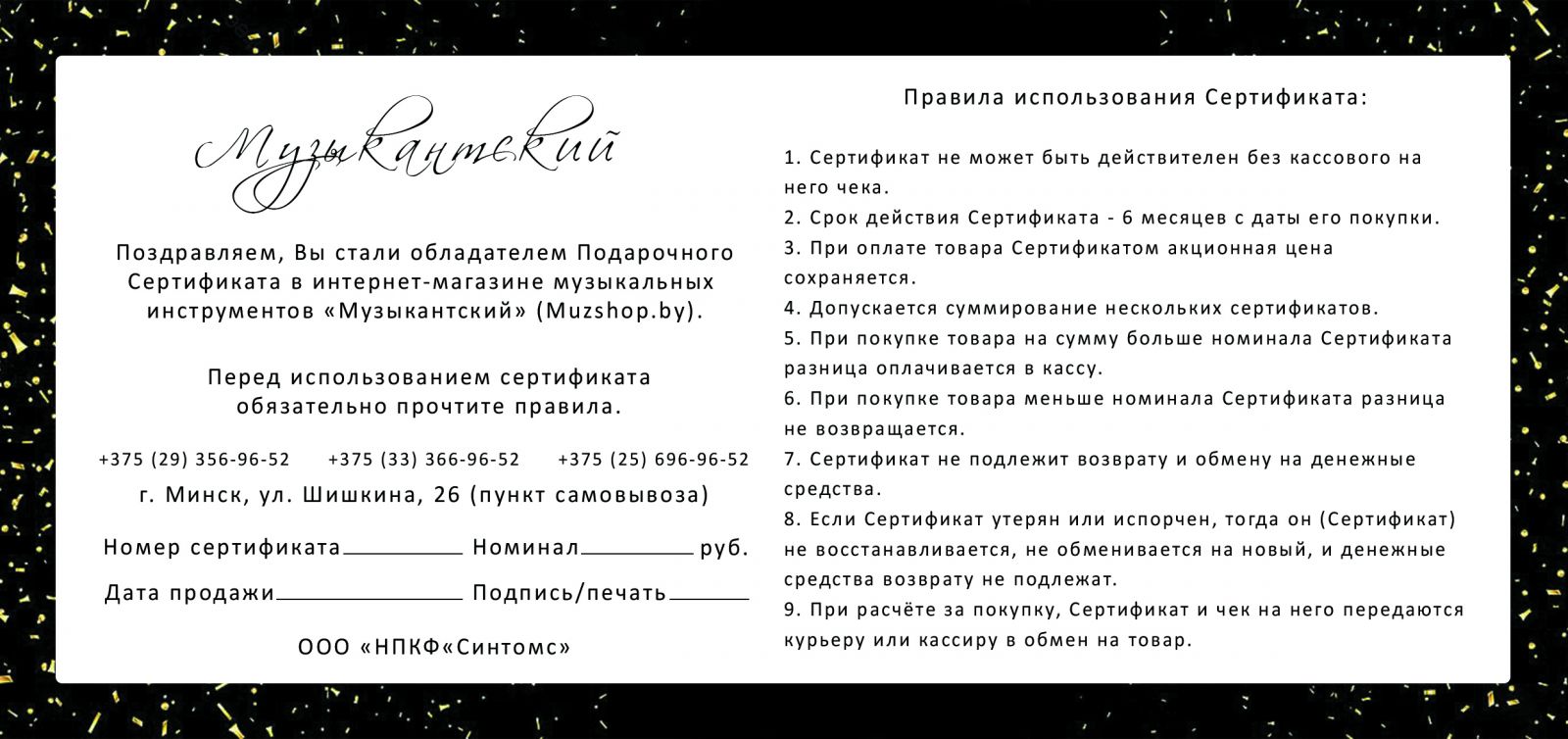 Теперь в нашем интернет-магазине действуют подарочные сертификаты на 50, 100 и 200 BYN. Комбинировать сумму можно по-разному, в зависимости от того, на какую сумму Вы расчитываете.