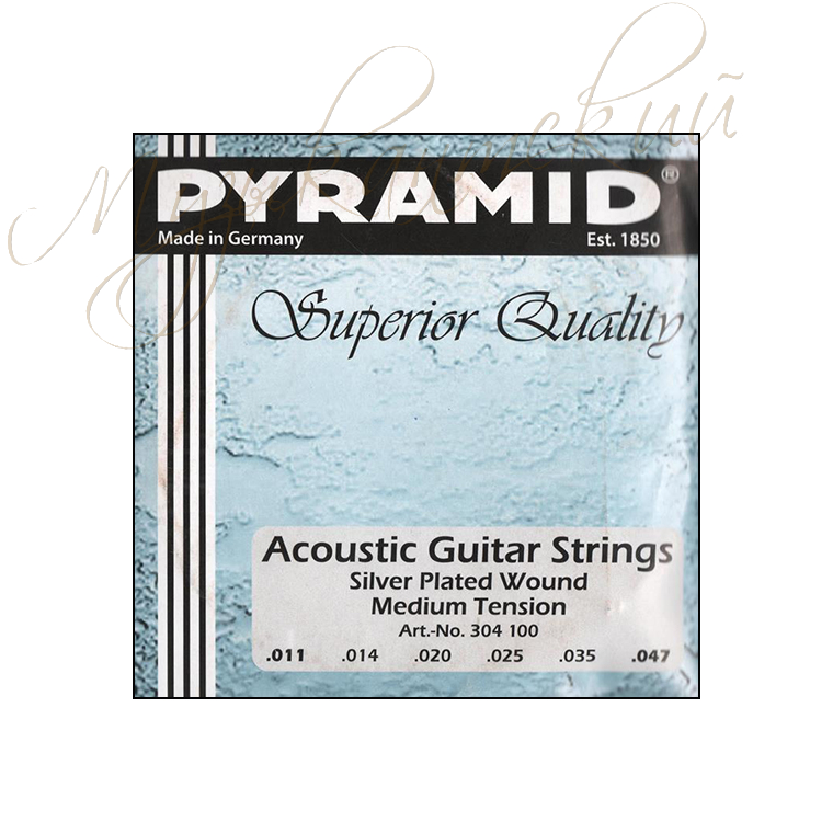 Струны для акустической гитары являются бестселлером компании Pyramid. Струны среднего натяжения, изготовлены из стали, обмотка изготовлена из посеребренной меди. Калибр струн: .011, 0.14, 0.20, 0.25, 0.35, 0.47.