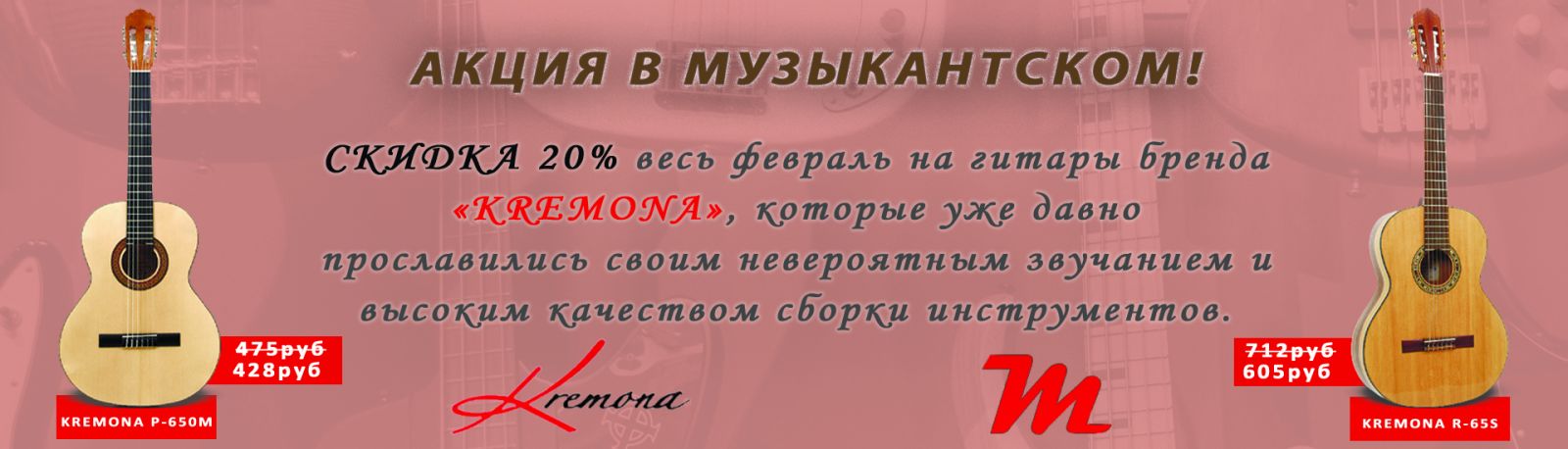 Скидки на классические и акустические гитары Kremona до 20 % до конца 2021 года.